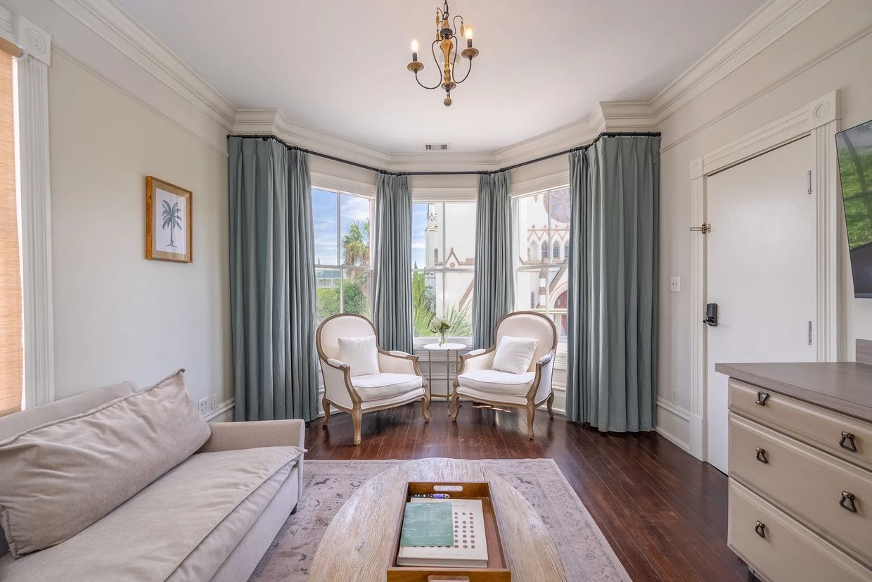 Mirabelle is a vintage 1800's era building set across from St. Johns Cathedral, one of the most iconic landmarks in Savannah. The collection of suites consists of 2 king suites and 2 queen suites, all of which overlook the cathedral to the east. Each suite is uniquely styled in era-appropriate luxury and class, but layered with modern comforts and technology.